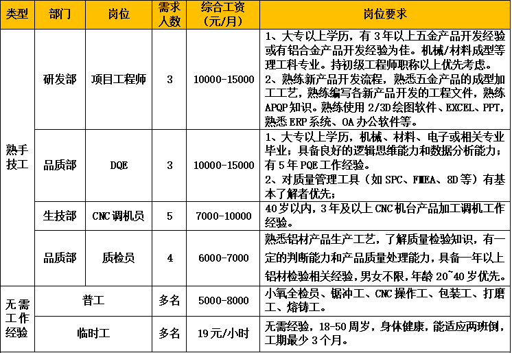 公司擁有廣東省唯一的鋁車體工程技術(shù)研究中心!扳伱冷X材”品牌先后獲得鋁型材行業(yè)內(nèi)的最高榮譽:“中國馳名商標”、“中國著名品牌”、“中國名優(yōu)產(chǎn)品”;公司榮獲“國家高新技術(shù)企業(yè)”、廣東省“專精特新”企業(yè)等榮譽稱號。因生產(chǎn)發(fā)展需要,誠聘以下崗位:
